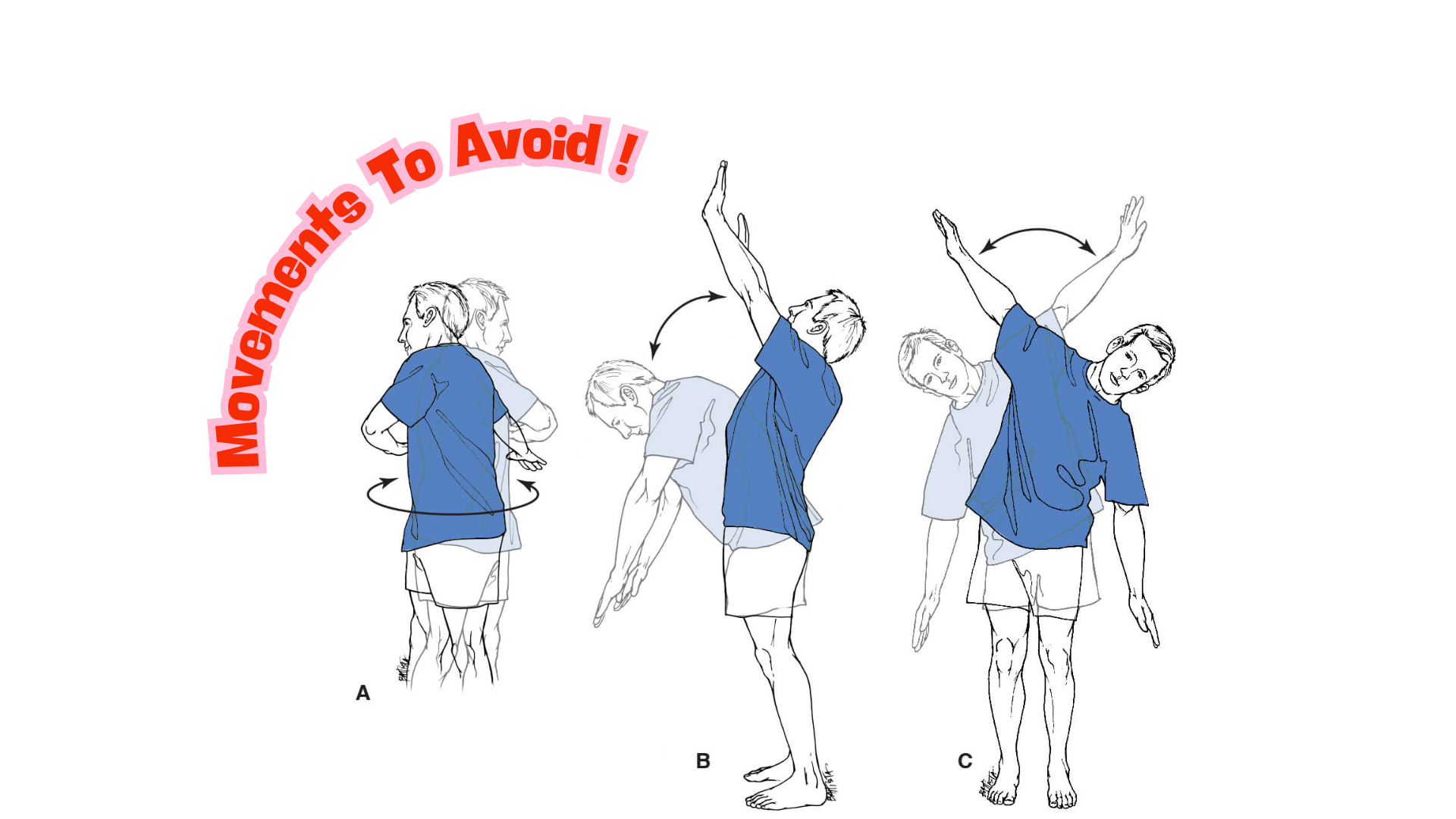People at high risk of fracture may need to limit repetitive bending, twisting, holding a bent or twisted position for an extended period of time.
